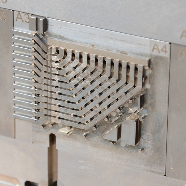 This precision progressive stamping die module is designed for high-accuracy production of electronic components, connector terminals, and micro-metal parts. Manufactured with ultra-fine machining technology, it ensures long tool life, stable performance, and micron-level tolerances.